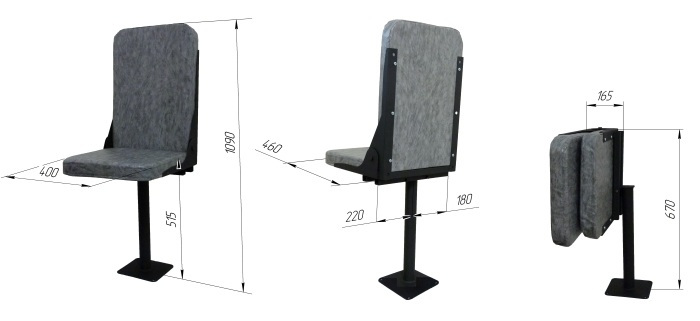 Кресло поставляется готовым к работе. Крепление кресла осуществляется в соответствии с приведенными габаритными и установочными размерами.